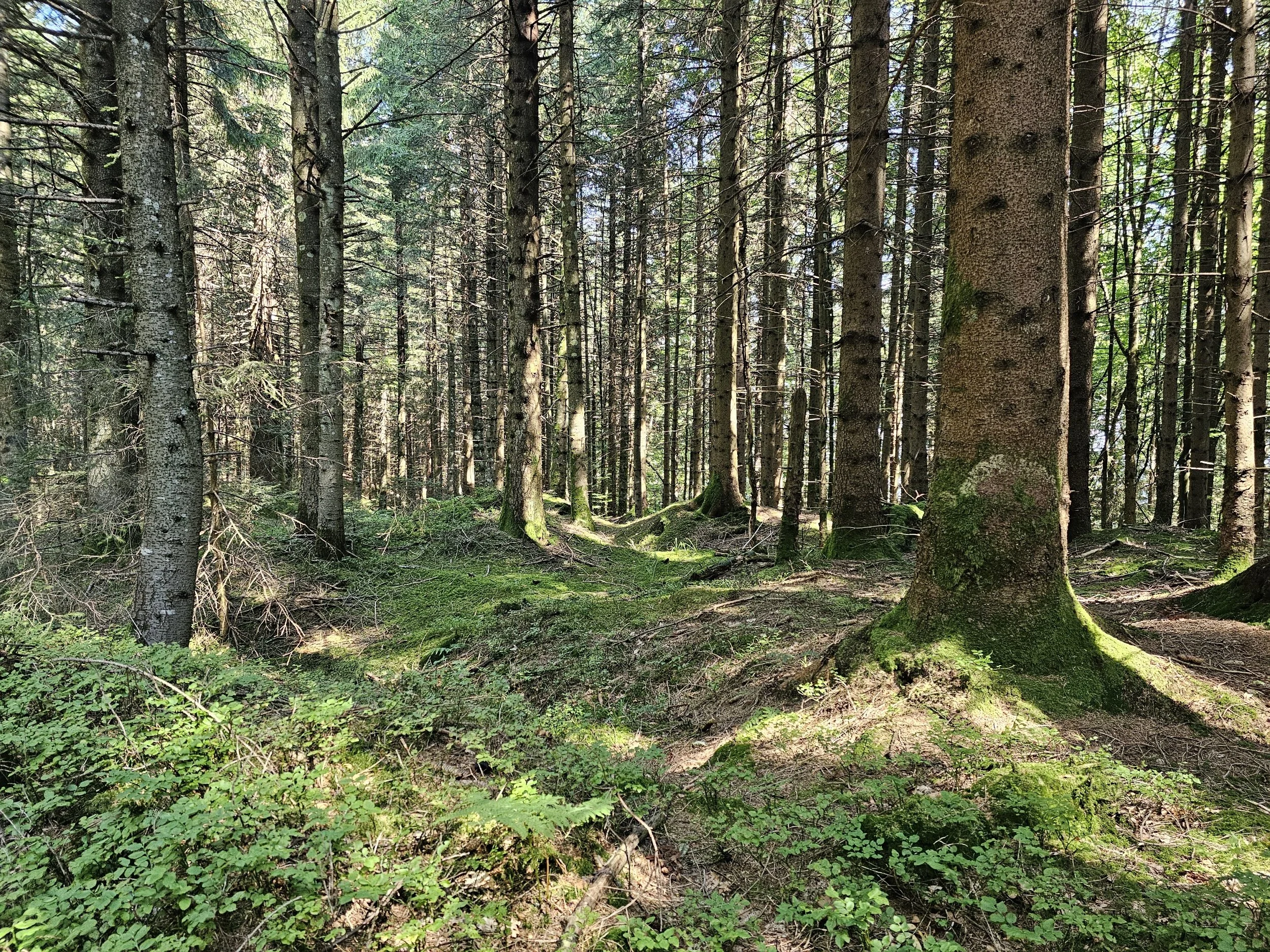 After a respectful handshake, we headed across the clearing to a trail up the mountain again. This had a very different feel. Both of us agreed, we were definitely not “walking” anymore. This climb was not difficult, but filled with scraggly roots, cut in logs for steps, boards to cross sandy spots, and all kinds of watch your step terrain. The forest seemed to be everywhere, until a window opened a view to see Luzerne on our left. Fierce called out to them, hoping for an echo. Up we climbed, looked at each other and said, “We are really hiking the Alps now!” Oh, I should mention that this whole time, we were wondering when we should be going down to complete the loop and see a river. Ya..we just kept hiking…upwards? Nevertheless, we also kept discovering the most beautiful landscapes and one actually made me laugh, grab Fierce by the shoulder and ask him if it wasn’t all so worth it? Lovely, just lovely.