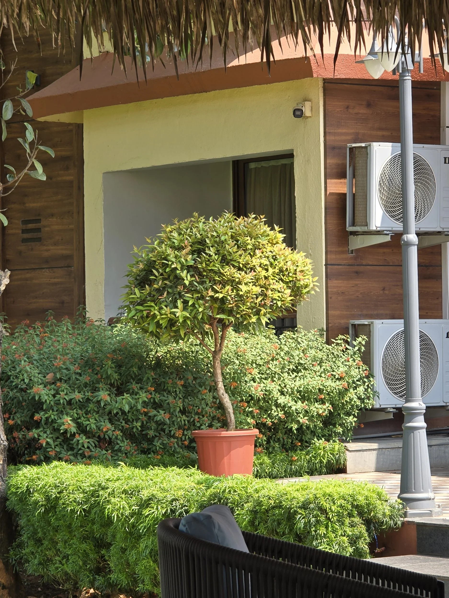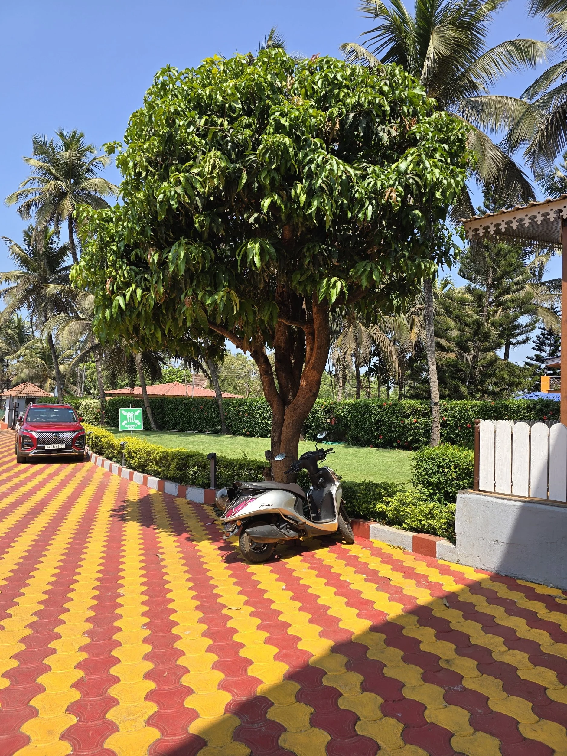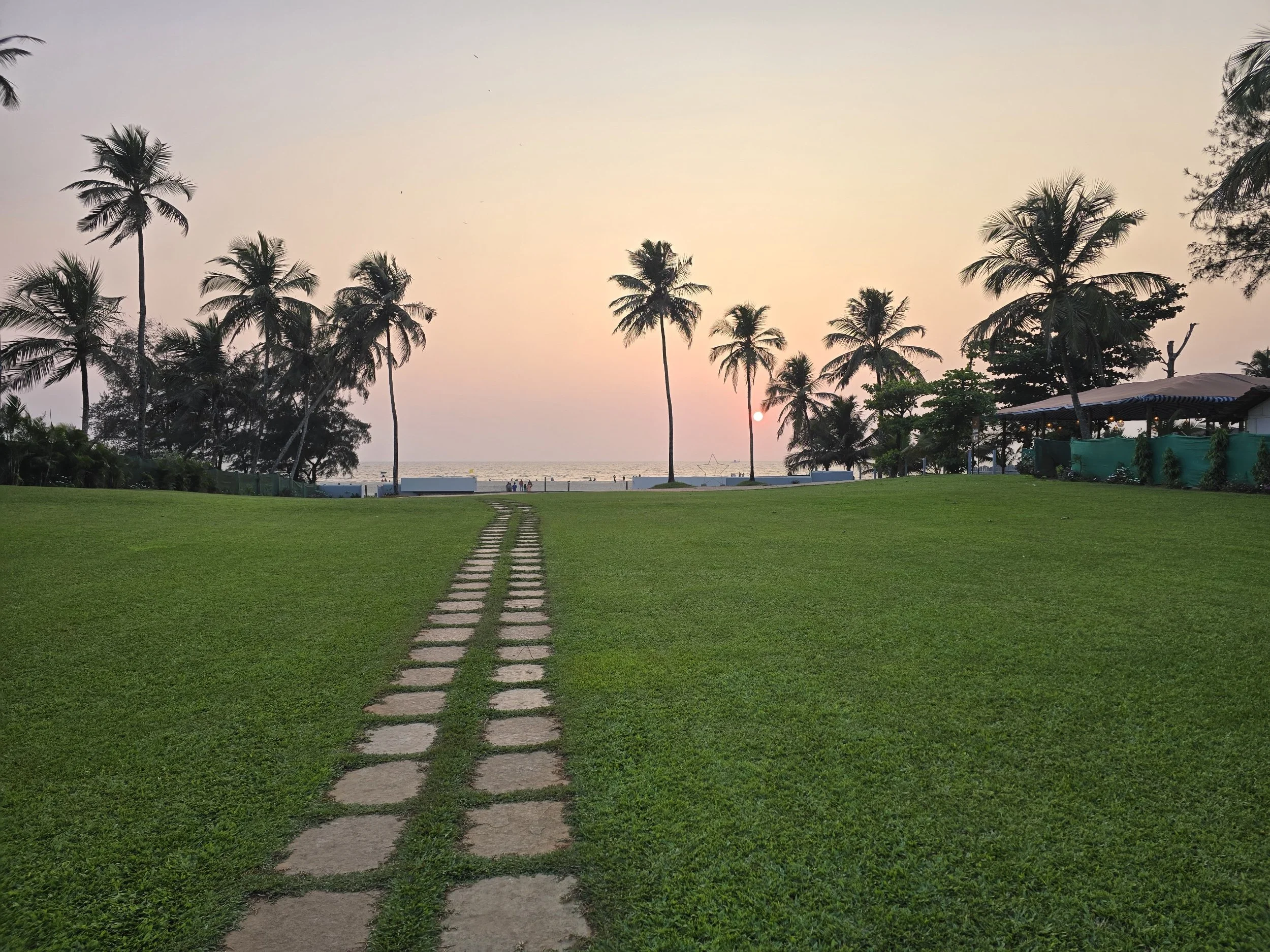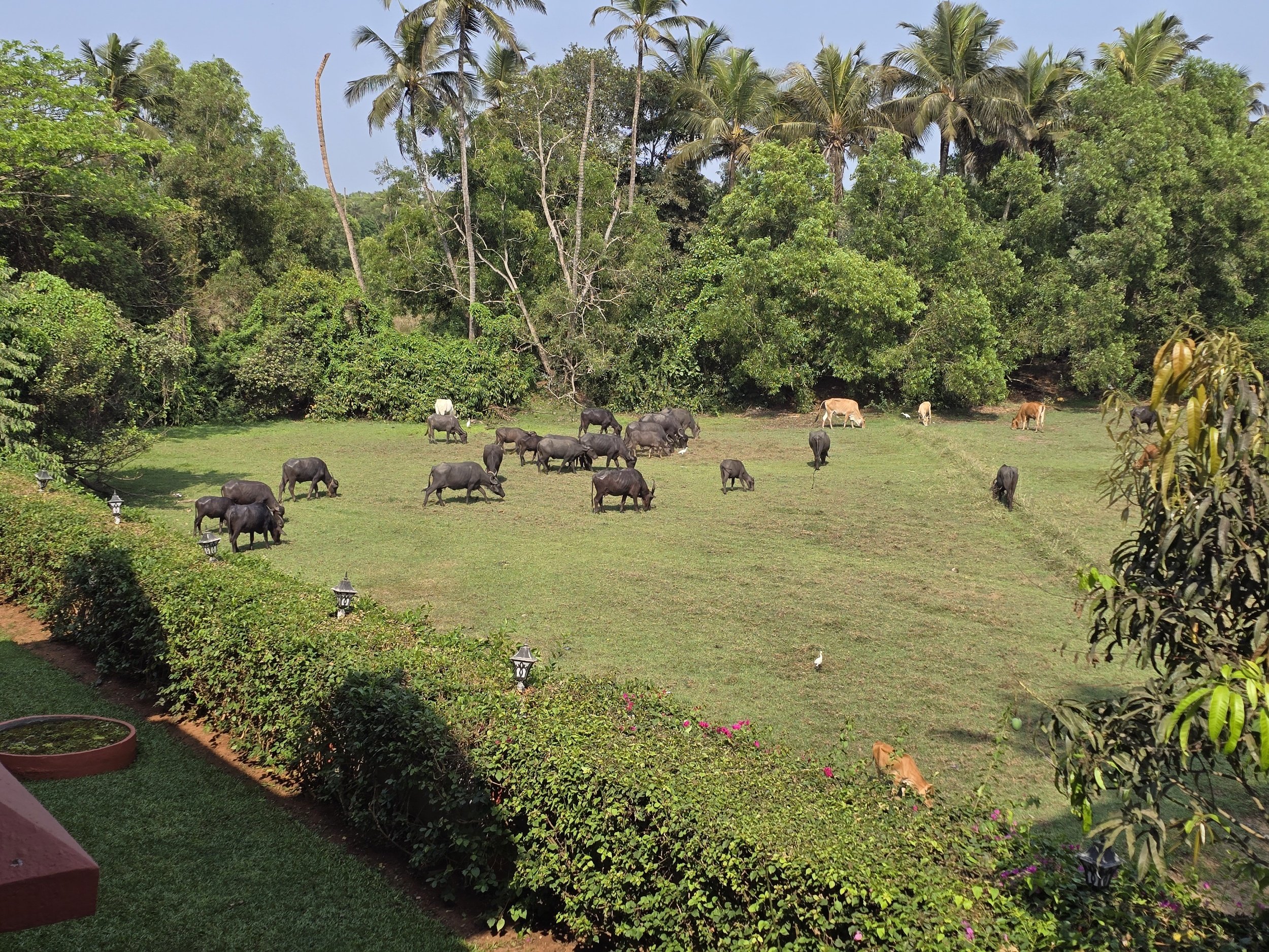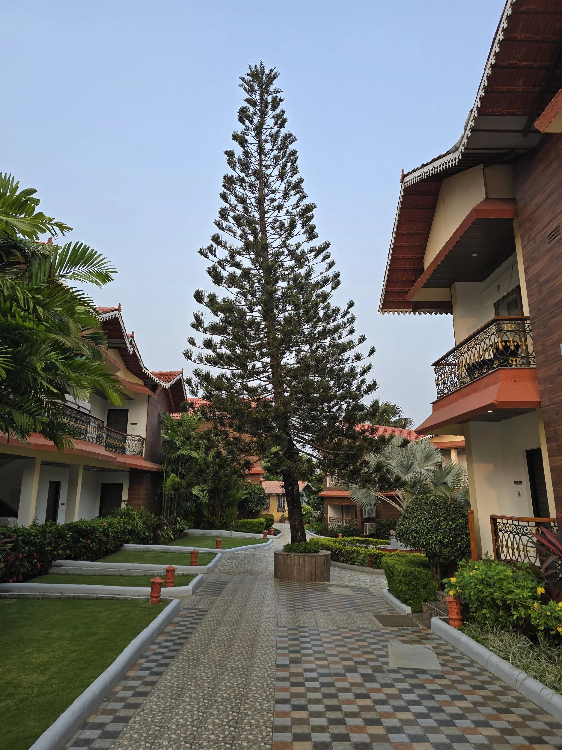 I cannot describe the delight Fierce and I felt when we pulled up to our Resort in Goa. Stone steps lead up to a semi open-aired reception with the hint of a pool just beyond. Someone brought a berry drink to welcome us which just added that light touch that says you can relax here.