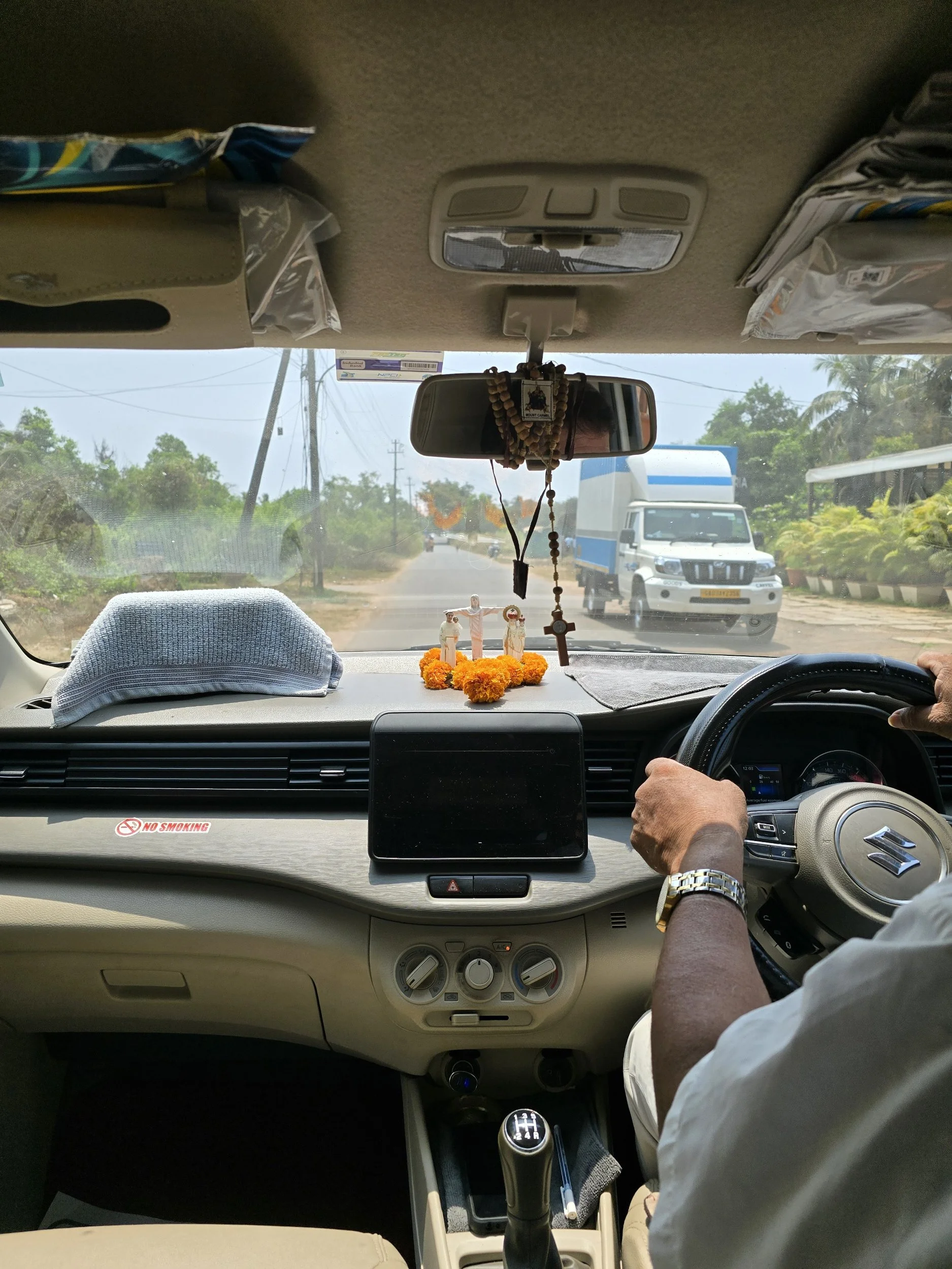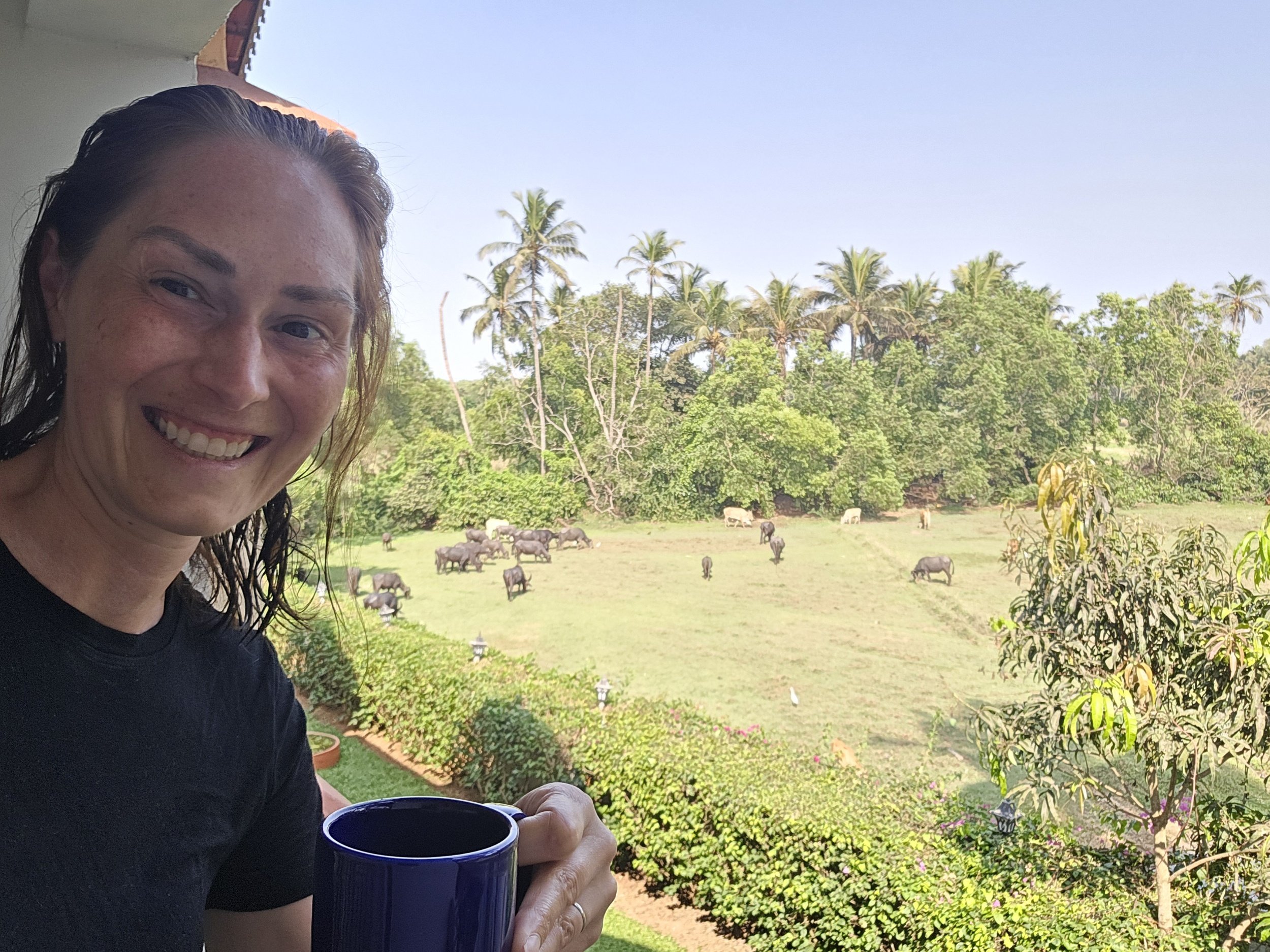 I had the great idea to buy post cards. I don't want to say, I have never done this, but it's pretty rare. A taxi took me five minutes down the road to Colva and some little street shops. I couldn't find a single one until a lady said she would call the guy from the shop next door. He came, opened his shop and let me look through his stacks of post cards all from the 70's. I kinda loved the whole crazy thing. I suppose most people don't really buy them anymore. Regardless, someone was willing to open their shop just for me and my request of antiquity. I filled them out back at the resort. There is a covered area with little lunch tables and I only had two more to write when a woman said "Hi" and in a few minutes Carmen and I were enjoying an Indian appetizer. She is from Switzerland so of course I let her know Fierce and I had just been there recently and it was one of our favorite countries we visited on that trip. She also gave me some gut health pills for Fierce since he hasn't felt well today. She was absolutely the sweetest.