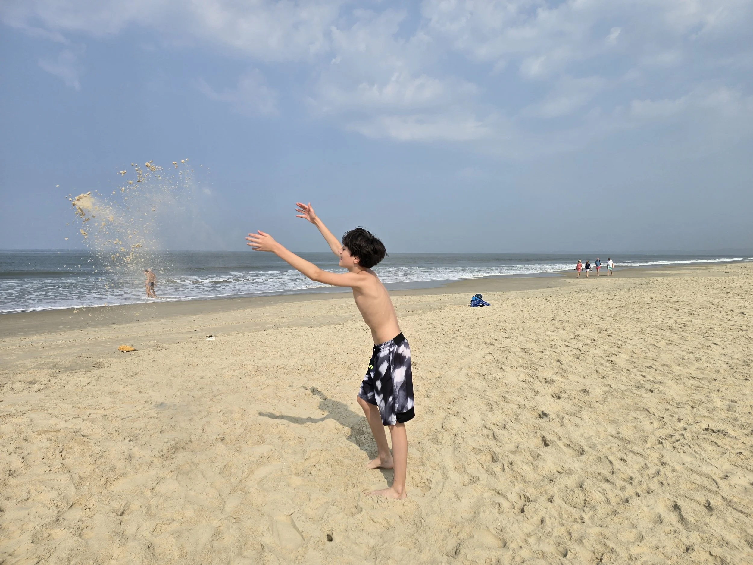 We woke up with the sun today, enjoyed a delicious buffet breakfast and made our way to the private beach just across from the Sea Queen Resort. Bags, sandals and sun hat were placed on our blue and white striped towels. The first thing I noticed when the water rippled over my feet was that it was warm! Shocked, we went our further to meet some crashing waves. We jumped wave after wave. Then we surfed a few to the shore. It was a blast. Later, we rested on our towels for a bit and I watched the waves thunder in from left to right. Then we explored the shoreline for a while pointing out tiny sand crabs and other burrowing crestations. Fierce even found a fist sized crab shuffling to the right as his beady eyes winked goodbye to us. We headed for the pool next and hung out there for most of the sun drenched afternoon. It was an absolutely lovely day.