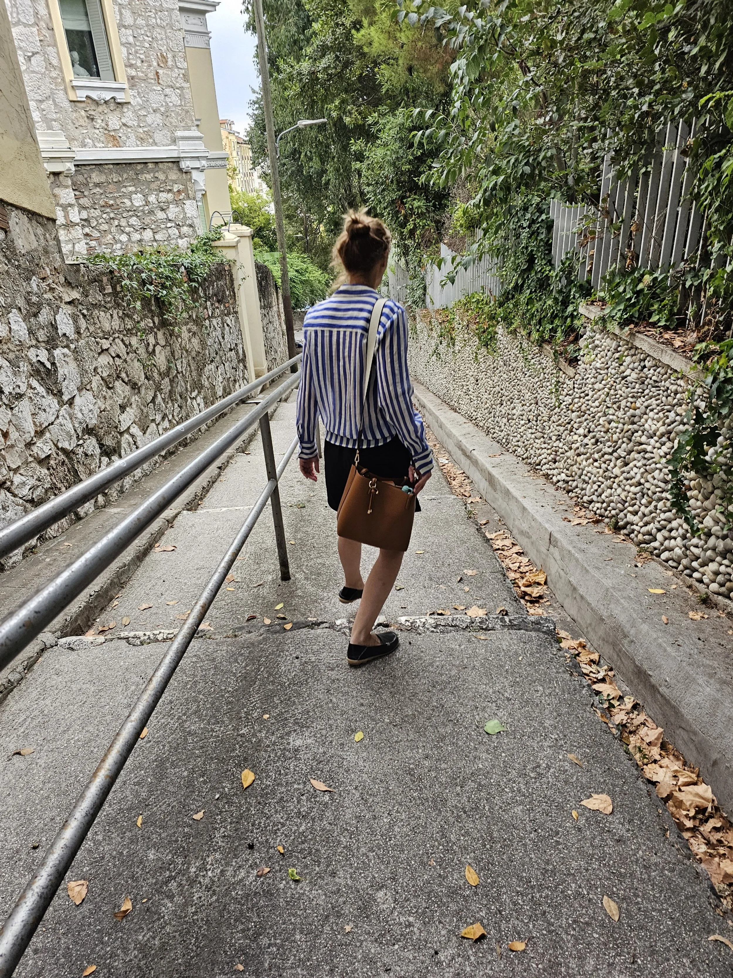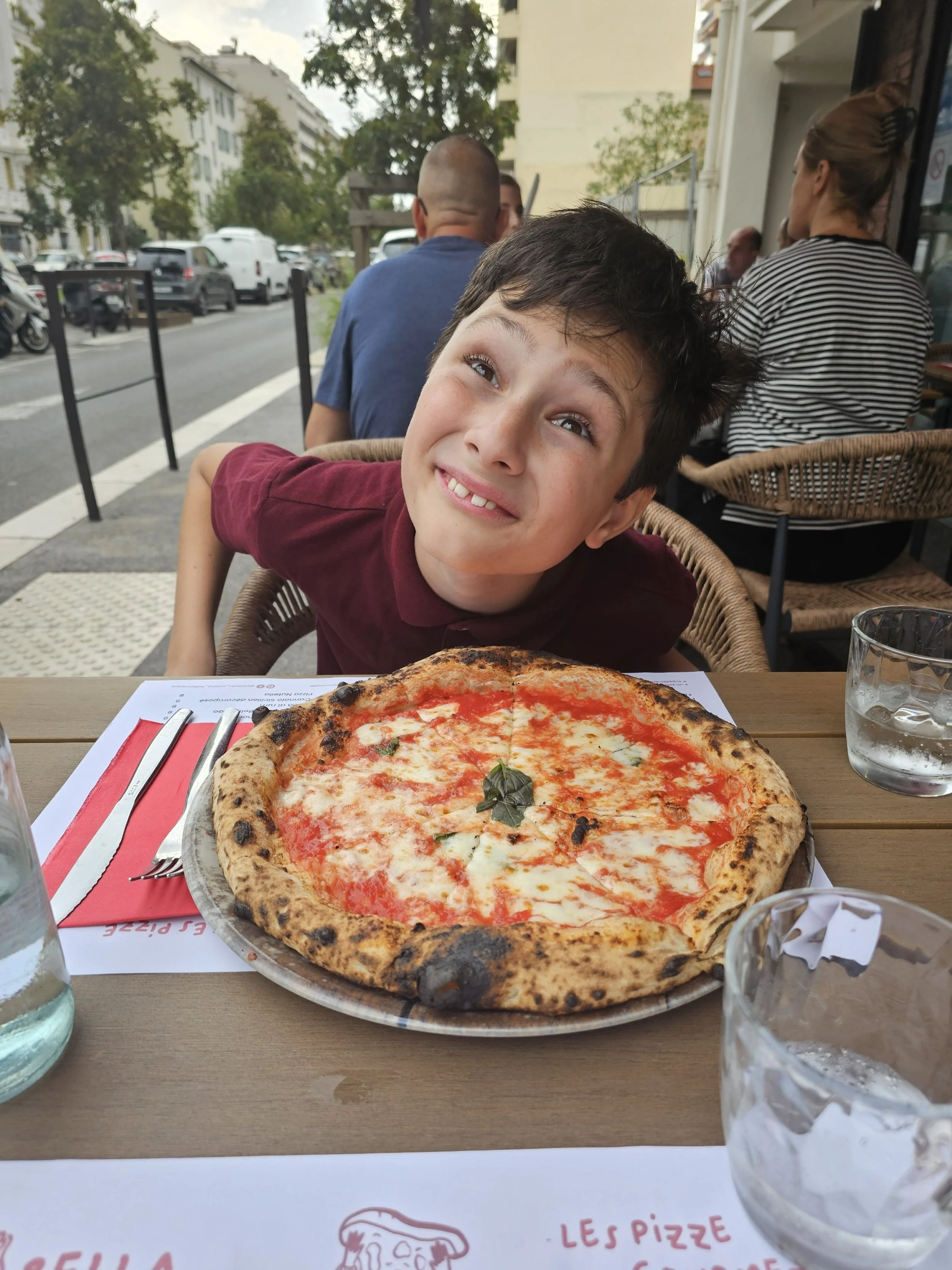 Our little corner of the world right now surrounds Cocoon Beach. We arrived in Nice, France yesterday and took the tram right to our hotel. Ibis Californie has a pharmacy and fruit stand to it’s right, a pizza shop to the left and a French bakery just across the street. Cross just one more street and Mediterranean Sea beckons you to walk it’s shores. The beach is composed of fist sized, but smooth and colorful rocks. As you walk closer to the water, the rocks get smaller until it’s a mix of sizes, and mostly pebbles. Fierce and I both put our feet in and got the bottoms of our jeans wet. It felt so good. We sat on the beach later taking in the views and skipped a few rocks into the sea. Afterwards, we ended the evening with pizza and bakery treats.
