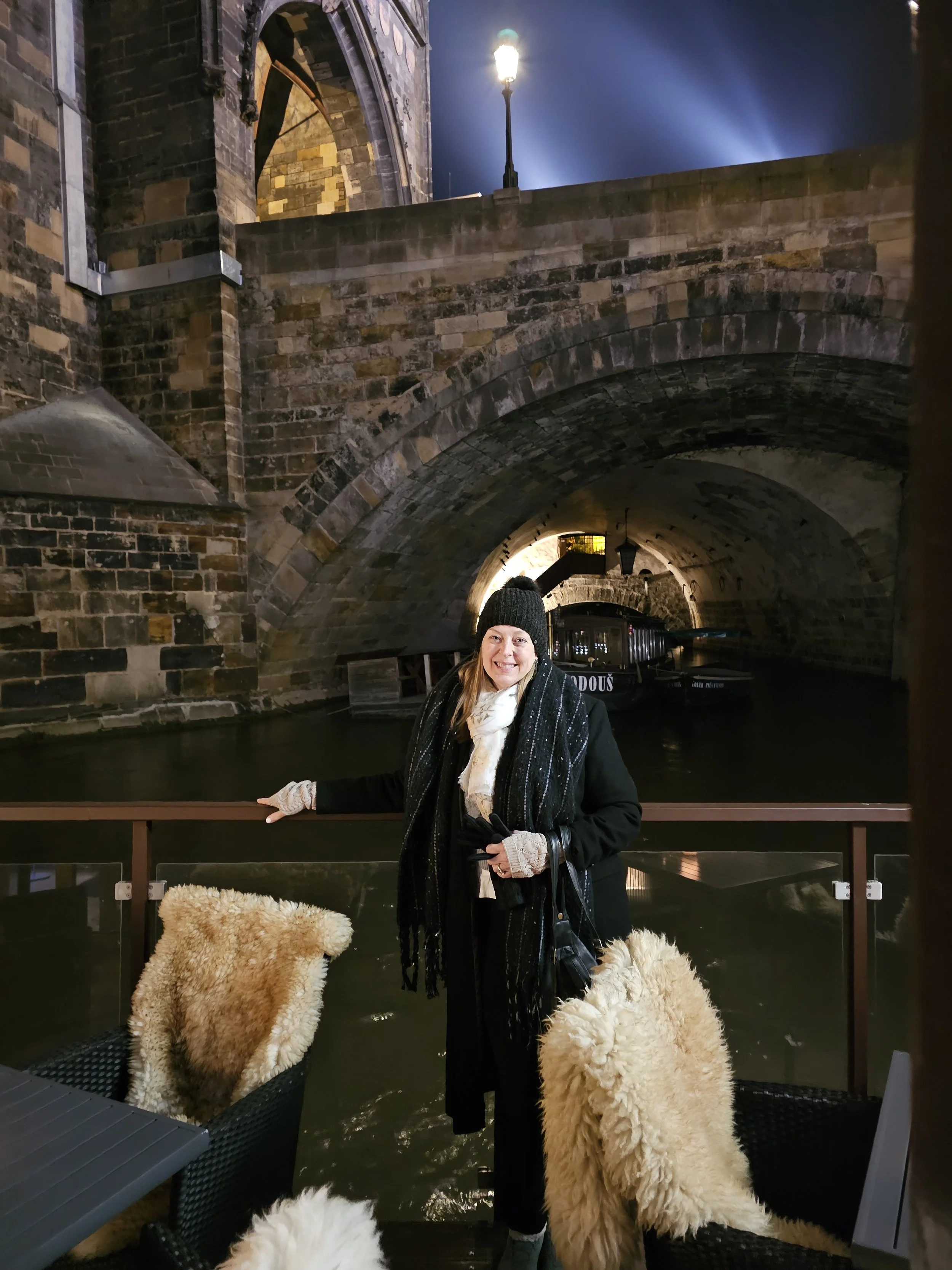 Andrea saw a cute little restaurant on the water as we were leaving the tour. The chairs had fur on them, so of course we had to check that out. It was an upscale restaurant with views of the water. Each chair had a blanket and each table had little dried flower arrangements. There were heaters above us and even the silverware was warm. My goulash soup in a bread blown warmed my insides and the whole experience felt charming and cozy.
